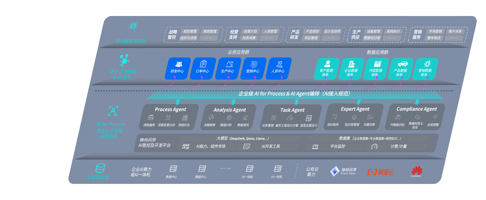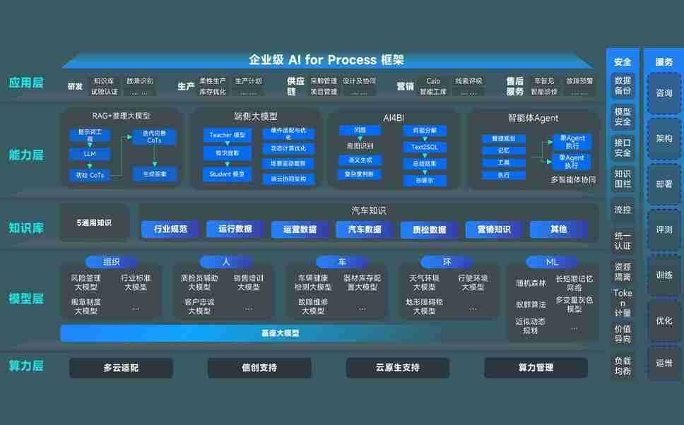 端到端的一站式AI工作空间深度融合了从企业战略规划到日常经营的全流程业务板块,,,定向解决车企内部领域多、、部门多、、、、链条长、、、场景碎片化等难题,,支持车企快速构建以AI为核心的生产力写作体系,,,,实现任务执行与AI能力的无缝集成与交互